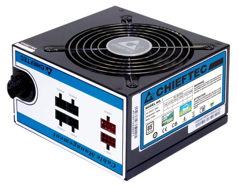 Napájecí zdroj je osazen tichým 120 mm ventilátorem. Účinnost zdroje je až 85%. Kabely jsou odpojitelné.
