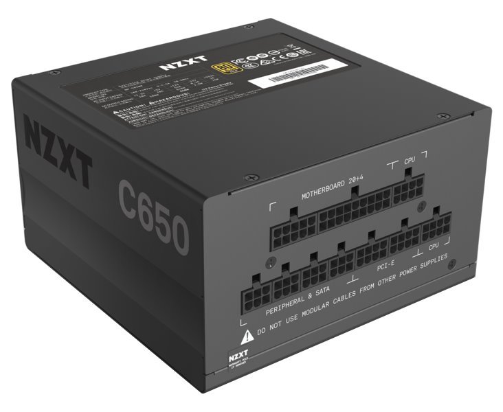 Napájecí zdroj o výkonu 650 W je osazen tichým, 120 mm velkým ventilátorem. Modulární kabeláž ušetří cenné místo ve skříni. Účinnost zdroje je 80PLUS Gold.
