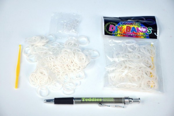 Udělej si svůj náramek - gumičky 250ks bílé s doplňky v sáčku 12ks v PLP