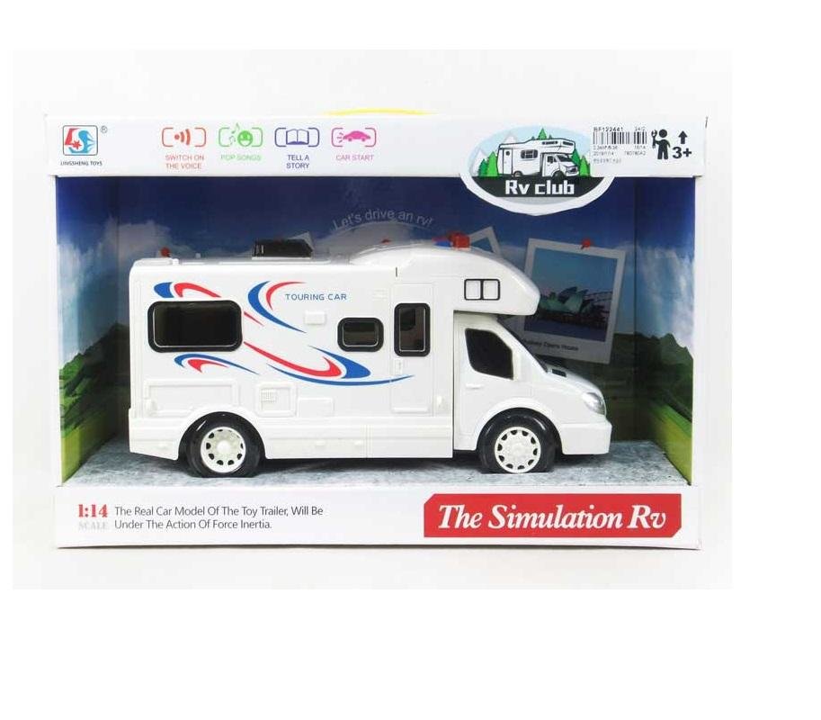 Duży biały kamper z funkcją światła oraz dźwięku. przeczytaj całość