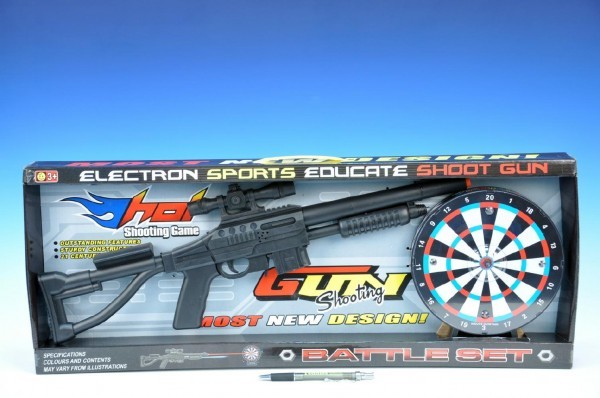 Pistole puška 54cm + terč průměr 18cm na baterie se zvukem se světlem v krabici