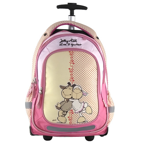 Školní batoh trolley Nici růžovo-žlutý, dvě ovečky