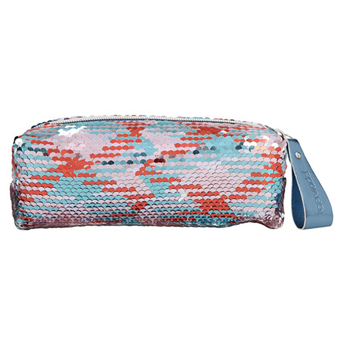 Kosmetická taštička má elegantní a zároveň praktické řešení vnitřního prostoru. Nabízí uzavíratelnou kapsu na zip pro kosmetické pomůcky a je opatřena poutkem pro snadnější přenášení. Barevný povrch taštičky s měnícími flitry v designu mimořádně oblíbené značky Top Model. Krásný a stylový dárek nejen pro mladé slečny!Rozměr: 21 x 8 x 8 cm.