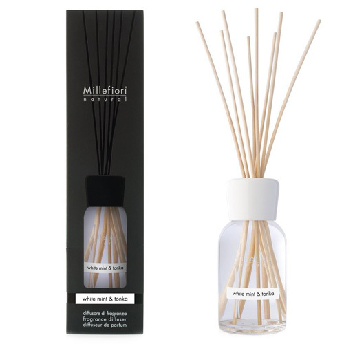 Skleněný difuzér Millefiori Milano Natural, 100ml/Bílá máta a tonkové boby