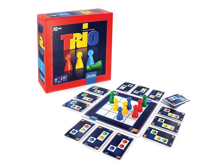 Postřeh, prostorová představivost a rychlá reakce – to vše je třeba k vítězství ve hře Trio. Rychlá postřehová hra pro celou rodinu. Kam mám přesunout jednu figurku, aby se mi povedlo vytvořit sestavu podle některé z vyložených karet? Pokud to vím, volám „Trio!“, přesouvám figurku a beru si...