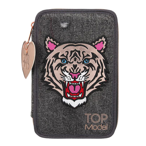 Penál s výbavou Top Model Tygr, třípatrový, šedý