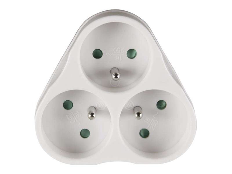 Rozgałęźnik gniazd 3× okrągły, biały. Praktyczny rozgałęźnik w białym wykonaniu. Za jego pomocą rozgałęzisz sieć zasilającą 230 V~ i łatwo podłączysz więcej urządzeń zgodnie z liczbą gniazd.
