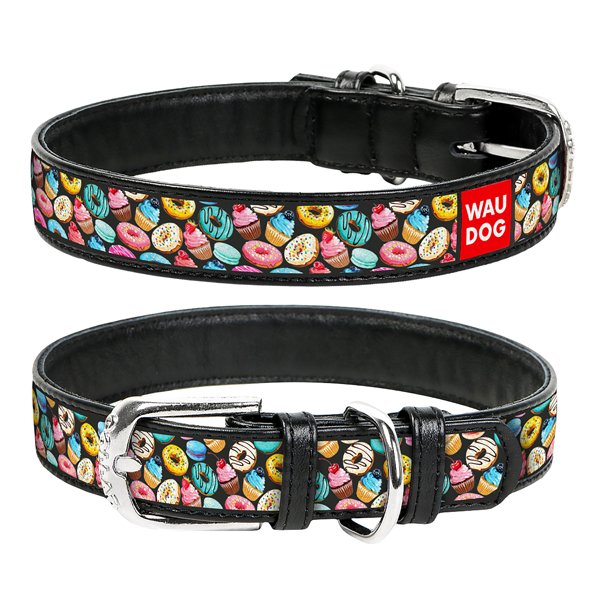 Obojek kožený Waudog Donuts černý (30-39cm/2cm)