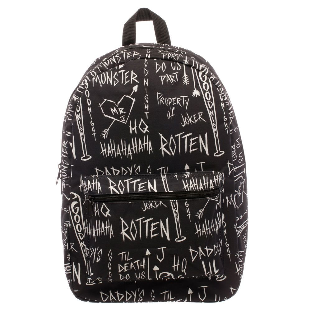 Černý jednoprostorový batoh s přední kapsou a motivem Suicide Squad. Batoh má délkově nastavitelné popruhy a ucho pro snadné nošení v ruce.