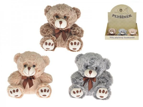 Medvěd sedící s mašlí plyš 12cm asst 3 barvy 12ks v DBX