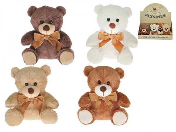 Medvěd s mašlí plyš 15cm sedící asst 4 barvy 9ks v boxu