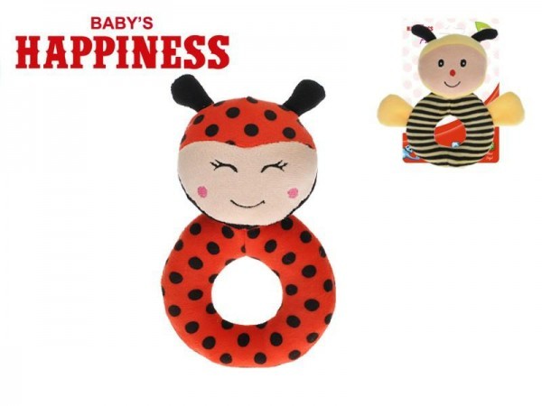Chrastítko plyš 14cm Baby´s Happiness asst 2 druhy na kartě v sáčku 0m+