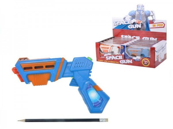 Vesmírná pistole plast 18cm na baterie se světlem a zvukem asst 2 barvy v krabici 12ks v DBX