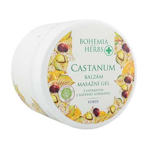 Castanum balzám koňský kaštan - extra silný masážní gel 600 mlCastanum - balzám kaštan koňský - je extra silný masážní gel, který obsahuje bylinné extrakty. Při vmasírování do pokožky napomá při regenerační masáži unavených nohou nebo namožených zad, a je vhodný i na pokožku v oblasti křečových...