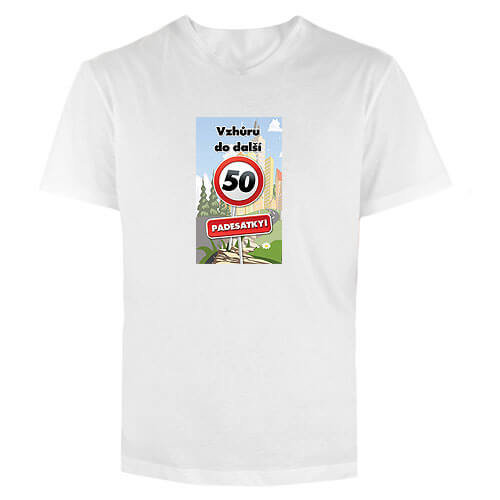 Bohemia Gifts Tričko s potiskem k 50. narozeninám - vhůru - XXL - klasický střih, bílá
