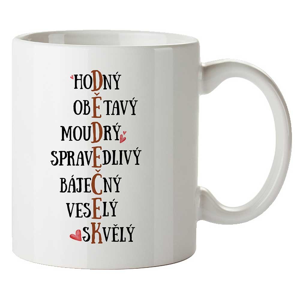 Keramický hrnek s potiskem - dědečekOriginální dárek pro dědečka k narozeninám, k svátku nebo pro radost.Průměr: 8 cmVýška: 9,5 cmObjem: 350 mlBalení: v kartonové krabičceTiskneme sublimační technologií na bílé keramické hrnky. Hrnky jsou balené v krabičce s potiskem, vydrží mytí horkou vodou,... przeczytaj całość