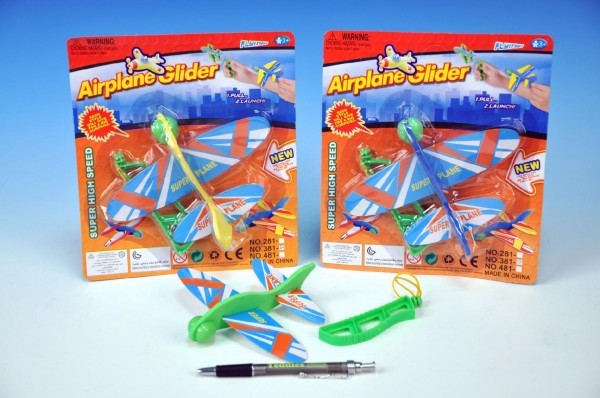 Vystřelovací letadlo 14cm asst 3 barvy na kartě
