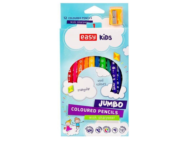 Pastelky EASY JUMBO trojhranné nelámavé 12ks s ořezávátkem