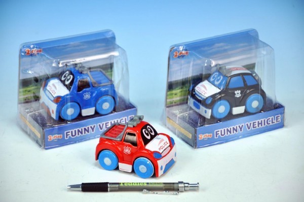 Auto policejní veselé kov 8cm na setrvačník 3 druhy v krabičce - 1 kus