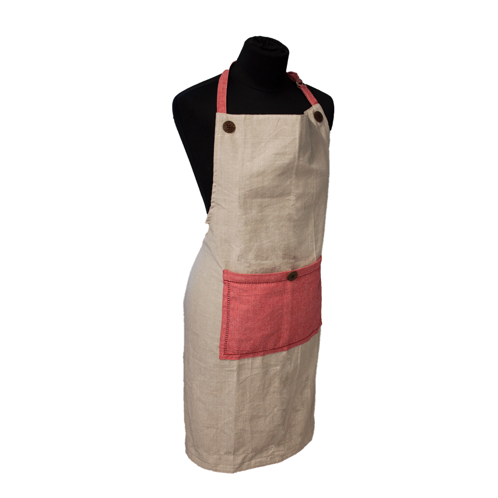 Kuchyňská zástěra z recyklované bavlny, 70 x 85 cm, béžová + červená