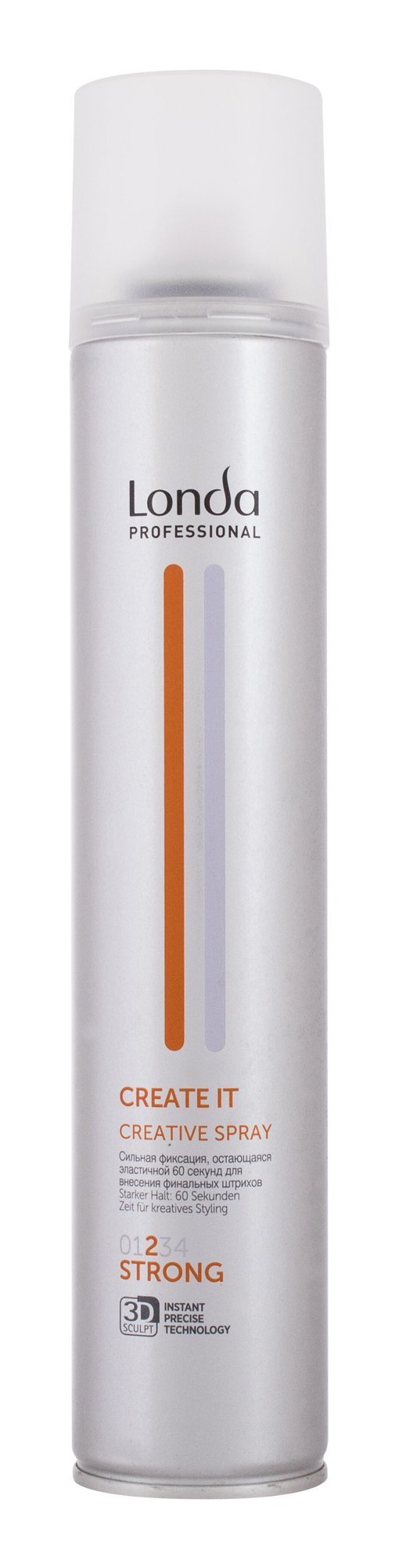 Londa Professional Create It Creative Spray je lak na vlasy pro středně silnou fixaci účesu. Lak dodá jakémukoliv účesu dokonalou pevnost a tvar, jenž můžete měnit ještě 60 sekund po aplikaci laku. Kromě zpevnění lak Londa Professional poskytuje vlasům ochranu před UV zářením, teplem a vlhkem.