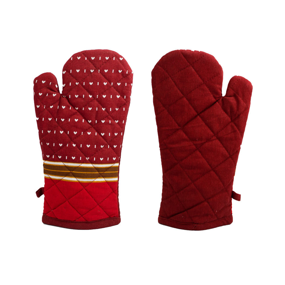 Kuchyňská chňapka s magnetem a poutkem s originálním motivem na červeném podkladě przeczytaj całość