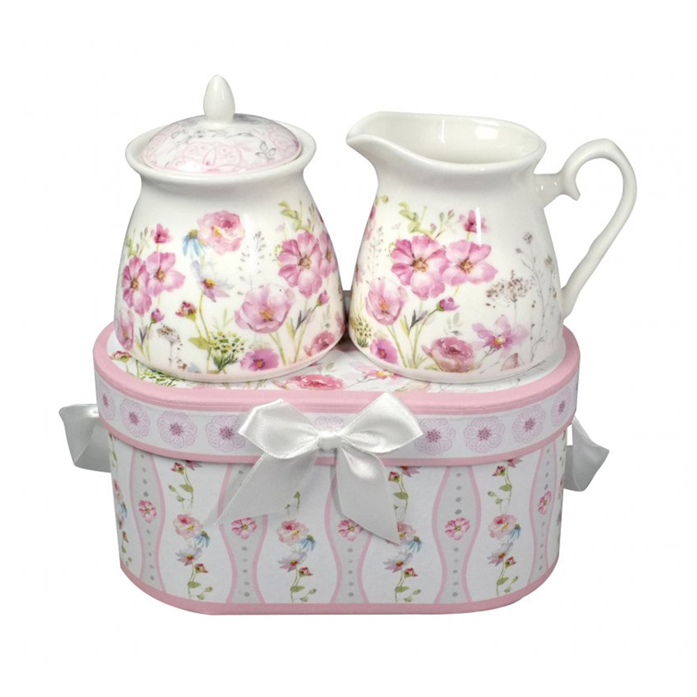 Porcelánová cukřenka a mlékovka - Růžové květiny