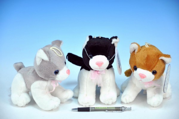 Kočka plyš 13cm s mašlí na baterie se zvukem; 3 druhy od 0 měsíců - 1 kus