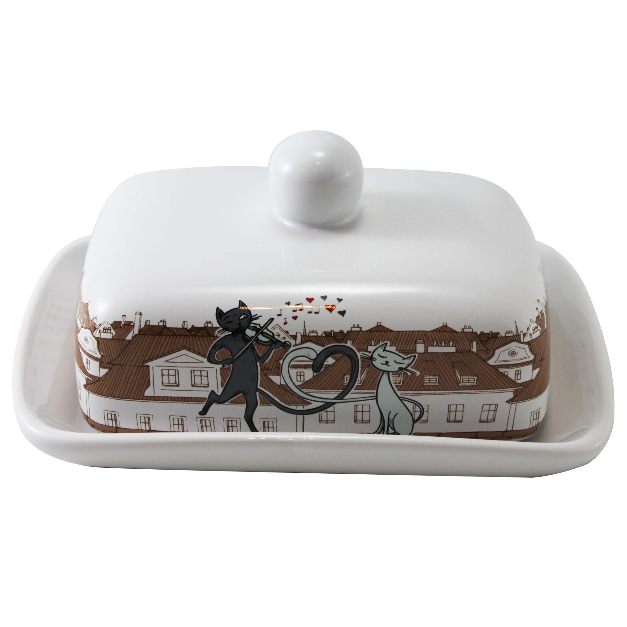 Máslenka s veselým motivem z kolekce Kočky ve měste.  V našem eshopu nabízíme další porcelán a textil s tímto motivem, například stojan na ubrousky, konvičky, hrníčky, misky a mnoho dalšího. Vše můžete hravě kombinovat. Dodáváme v barevné kartonové krabičce.doprodej przeczytaj całość