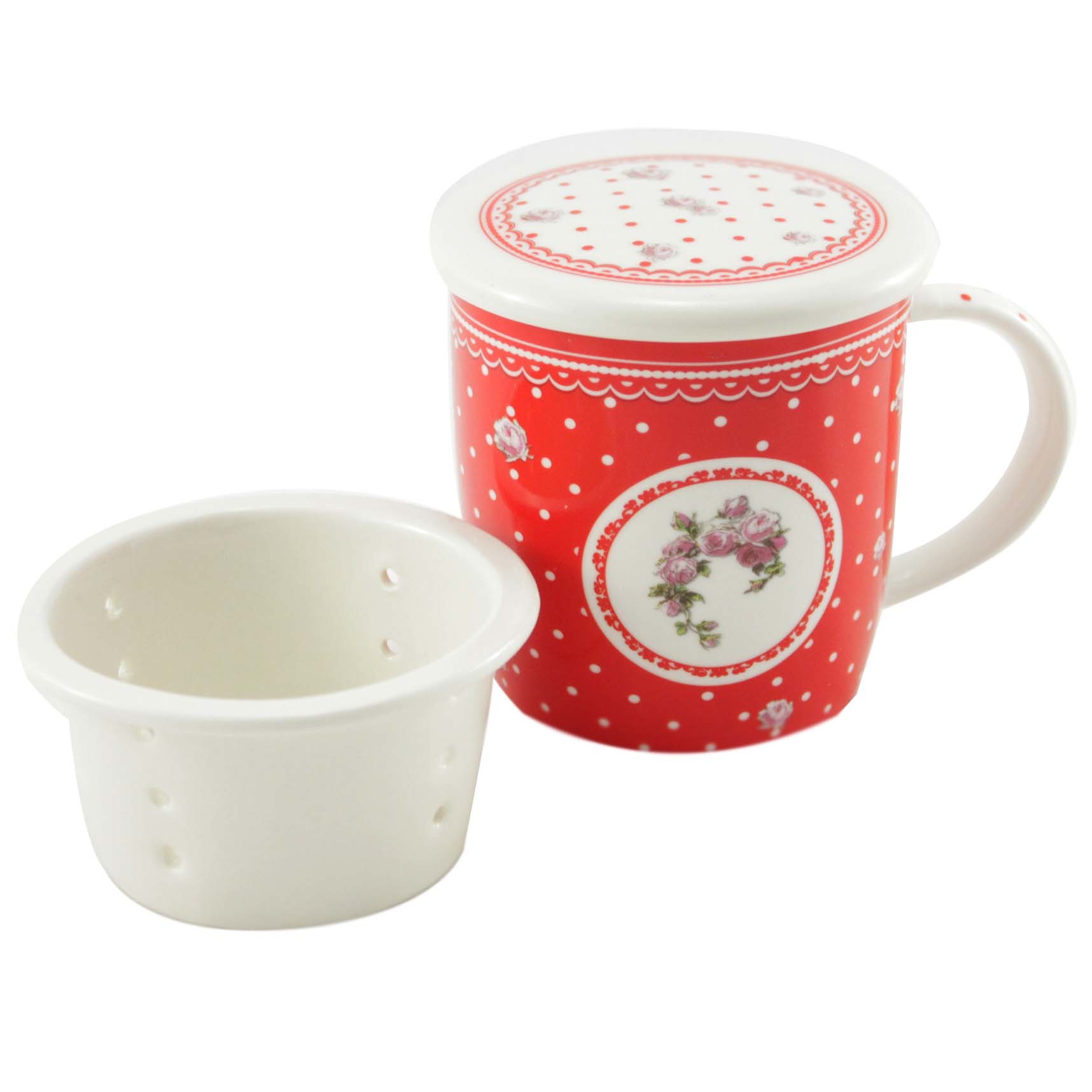 Home Elements porcelánový hrnek Elegant red se sítkem a víkem 390 ml - bílé tečky