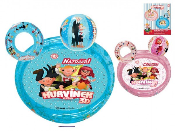 Sada nafukovací Spejbl a Hurvínek 3D bazén 152x30cm + kruh 50cm + míč 50cm, 2 barvy, v sáčku - 1 balení