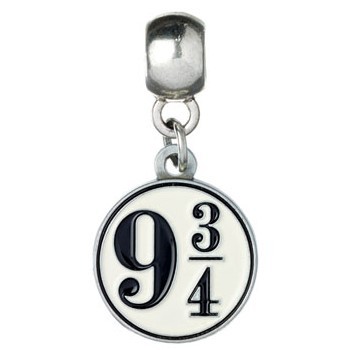 Přívěsek s postříbřeným symbolem nástupiště 9 a 3/4. Toto zvláštní nástupiště se nachází na nádraží King s Cross a je známé jako místo odjezdu bradavického expressu - vlaku do čarodějné školy v Bradavicích. Průměr přívěsku je cca 1,5 cm. przeczytaj całość