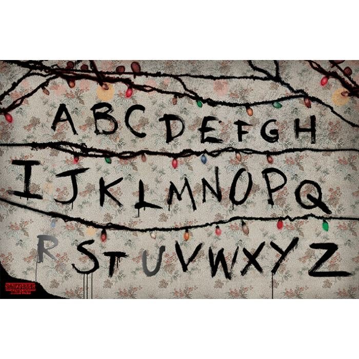 Plakát s proměnlivou grafikou na motivy hororového seriálu Stranger Things. Plakát je pokryt bodovým UV leskem na písmenech R, U, N, čímž vzniká jedinečný světelný efekt. przeczytaj całość