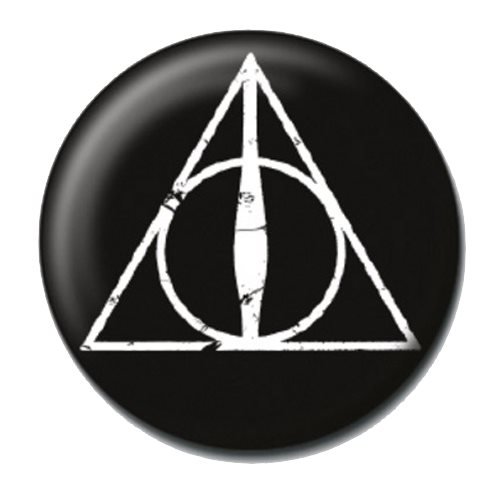 Placka se znakem Relikvie smrti z filmů a knih o čarodějnickém učni Harry Potterovi. przeczytaj całość
