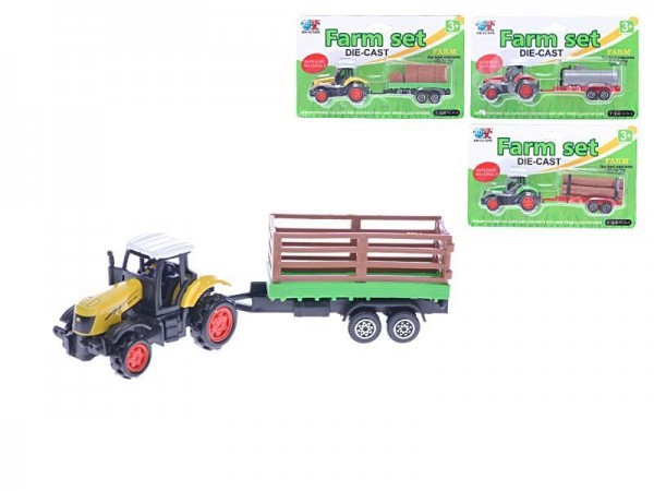 Traktor kov s vlečkou 16cm; 4 druhy; na kartě - 1 kus