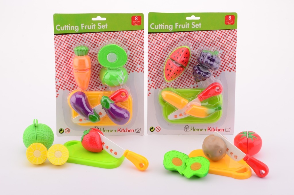Ovoce a zelenina, kterou lze rozříznout přiloženým plastovým nožíkem na dvě části, které lze poté zase spojit. Součástí balení jsou různé druhy zeleniny a ovoce, plastový nožík a prkénko. przeczytaj całość