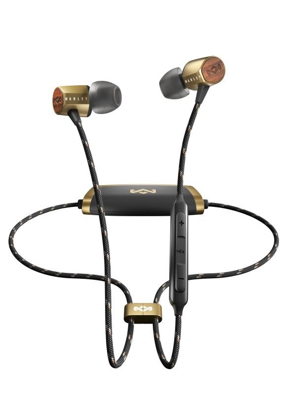 MARLEY Uplift 2 Wireless BT - Brass, bezdrátová sluchátka do uší s ovladačem a mikrofonem