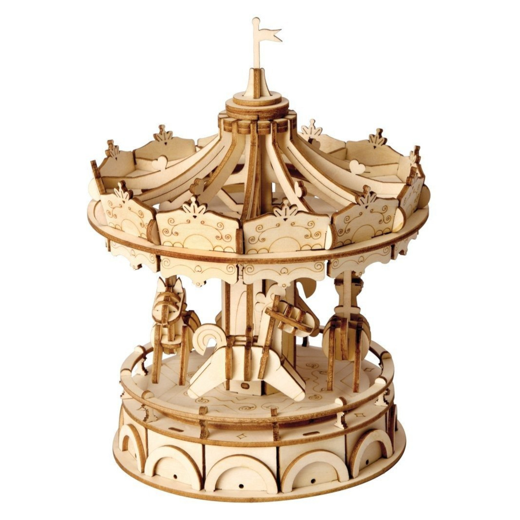 Odkryj urok klasycznej karuzeli dzięki tej szczegółowej, drewnianej układance 3D!