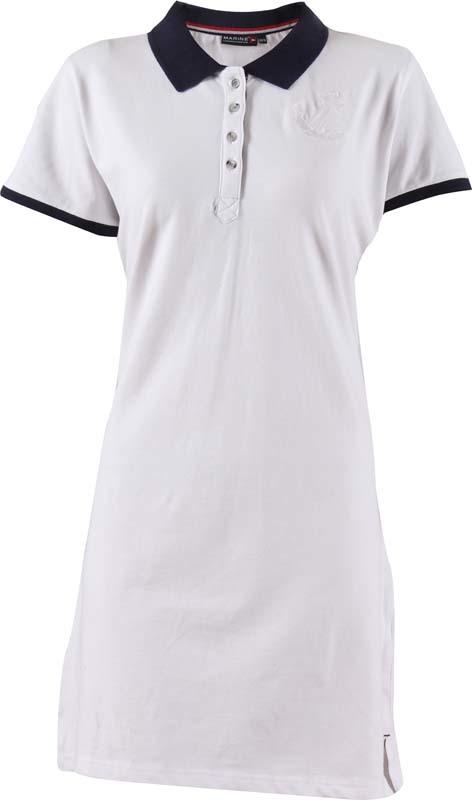 Dámské pique šaty s límečkem a knoflíčky v námořnickém stylu, s rozparky, s vyšitou kotvou. przeczytaj całość