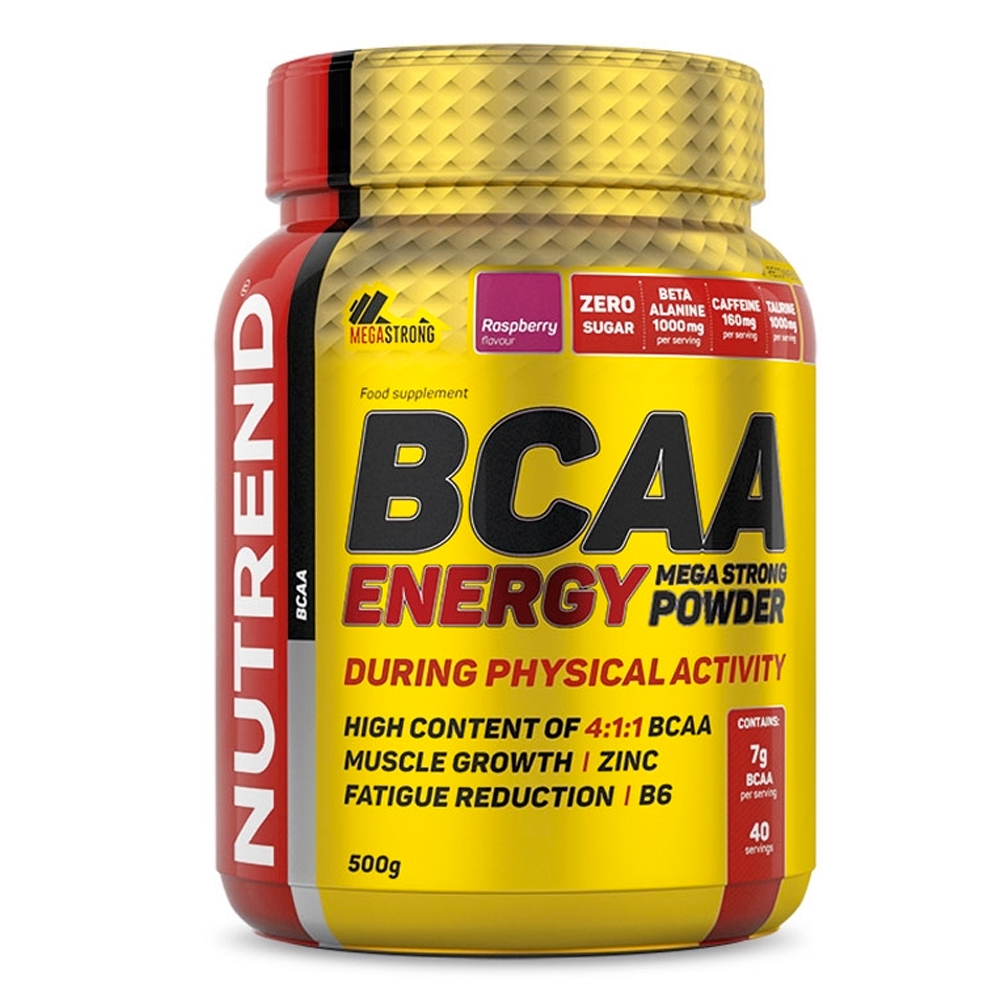 Nutrend BCAA Energy Mega Strong Powder - Malina - 500 Gramů