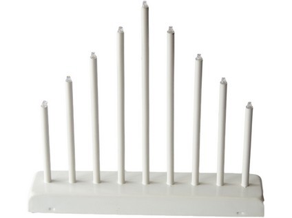 wymiary (D x W x S): 26 x 31 x 5,5 cm zasilanie: 2 x bateria AA, nie wchodzi w skład zestawu materiał: metal kolor: biały 9 świec barwa światła: 3000 K (ciepła biała)