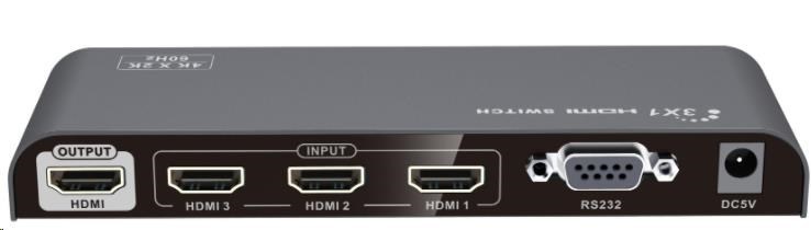 PREMIUMCORD HDMI switch 4Kx2K@60Hz 3:1 kovový s dálkovým ovladačem a napájecím adaptérem