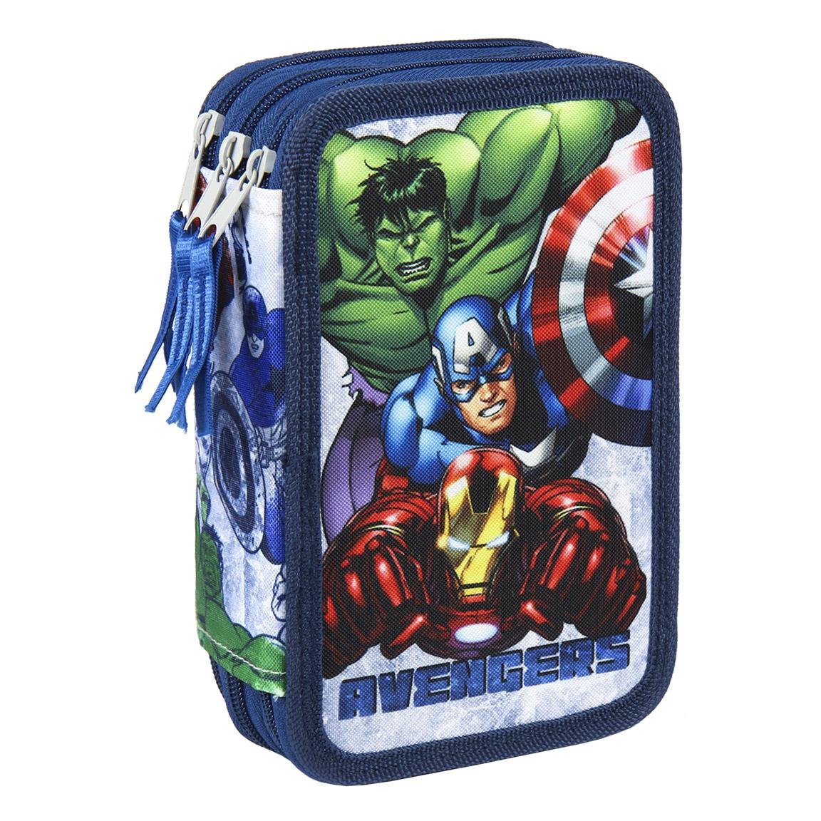 Trojdílný plněný penál s motivem dětského komiksu Avengers.