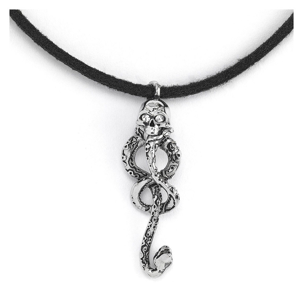 Każdy Śmierciożerca ze świata Harry’ego Pottera nosi wytatuowany znak, a w tej formie jest także ten ekskluzywny naszyjnik. Zawieszka z kryształkowymi oczkami odzwierciedla znak zła zwolenników Lorda Voldemorta. W komplecie znajduje się skórzany sznurek, który można dostosować do pożądanej długości. Uzupełnij swoją kolekcję o ten wyjątkowy element biżuterii. Materiał: stop cynku, kryształy