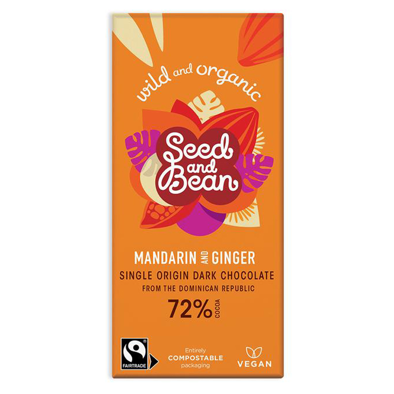 BIO hořká čokoláda se zázvorem a mandarinkovým olejem Seed&Bean 85g. Fairtrade čokoláda, 72% kakaa. Vegan. przeczytaj całość