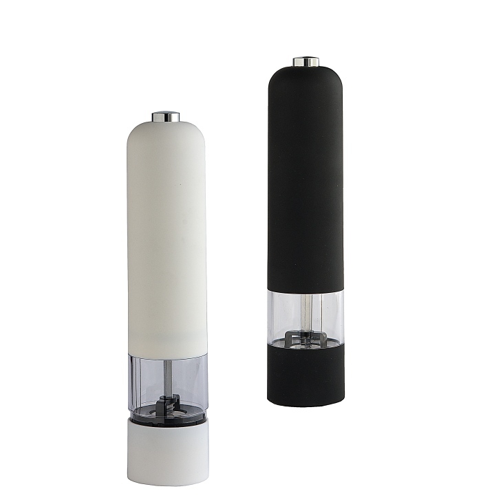 Plastový mlýnek na pepř nebo sůl, ergonomického tvaru, který snadno čerstvě namele koření při dokončování pokrmů, ale dochutí i hotová jídla přímo u stolu. Stačí jen stisknout tlačítko v jeho horní části.