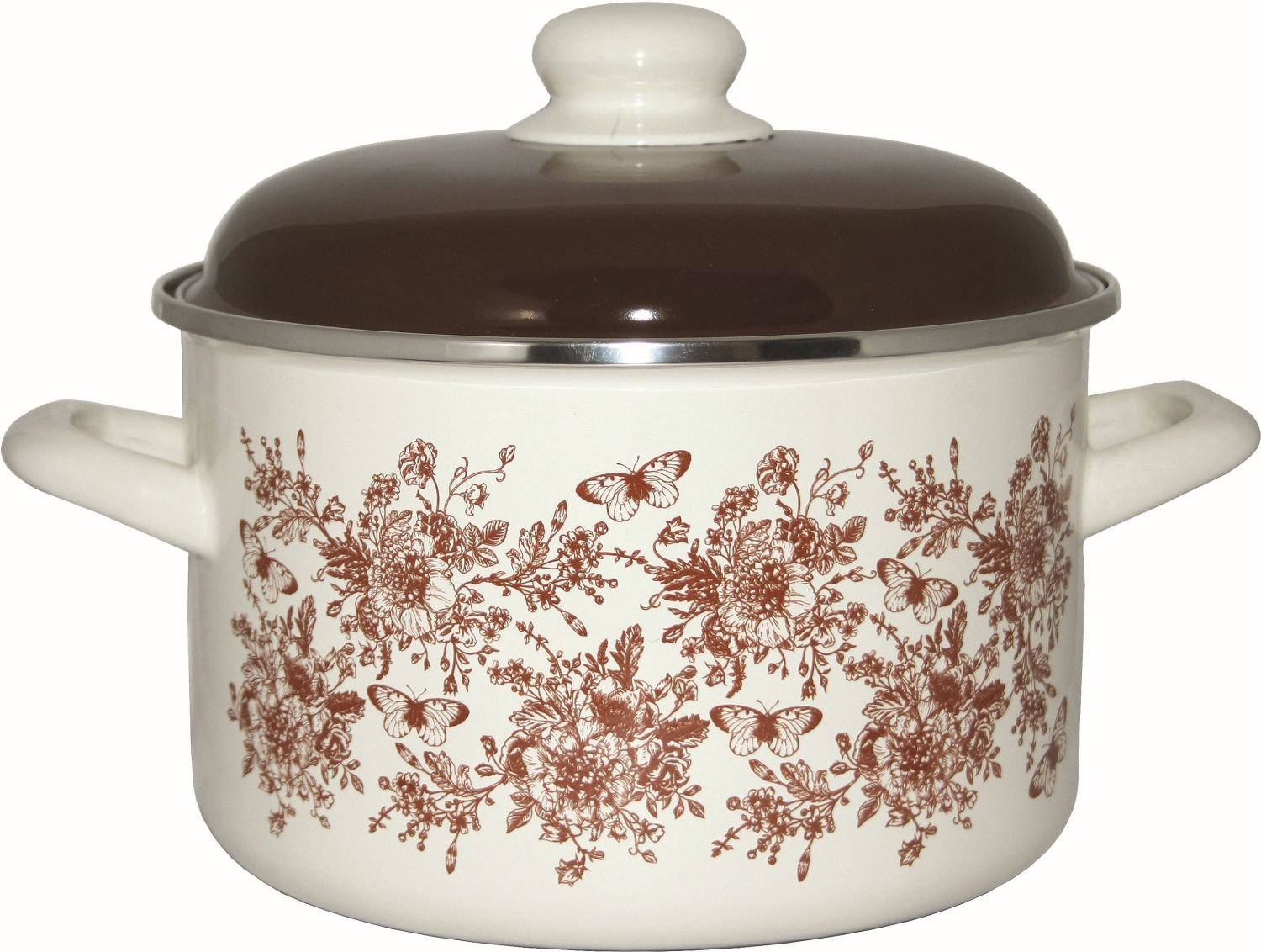 Hrnec 2 l smalt s poklicí dekor květin a motýlů 16 cm
