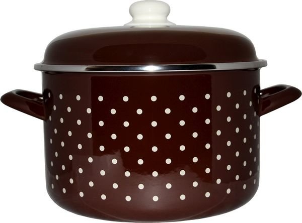 Hrnec 6,75 l smalt s poklicí dekor hnědý s bílými puntíky