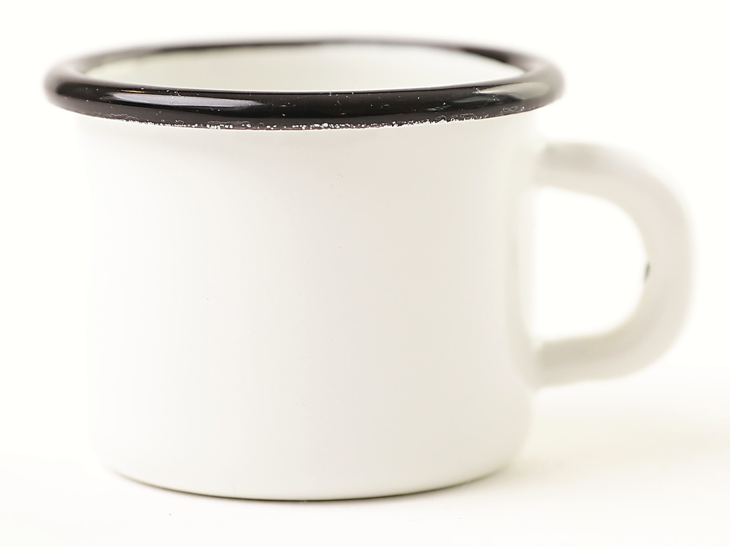 Smaltovaný mini hrnek o objemu 0,085 l. Materiál - smalt. Barva - bílá. Rozměry - výška 4,5 cm, průměr 5 cm. przeczytaj całość
