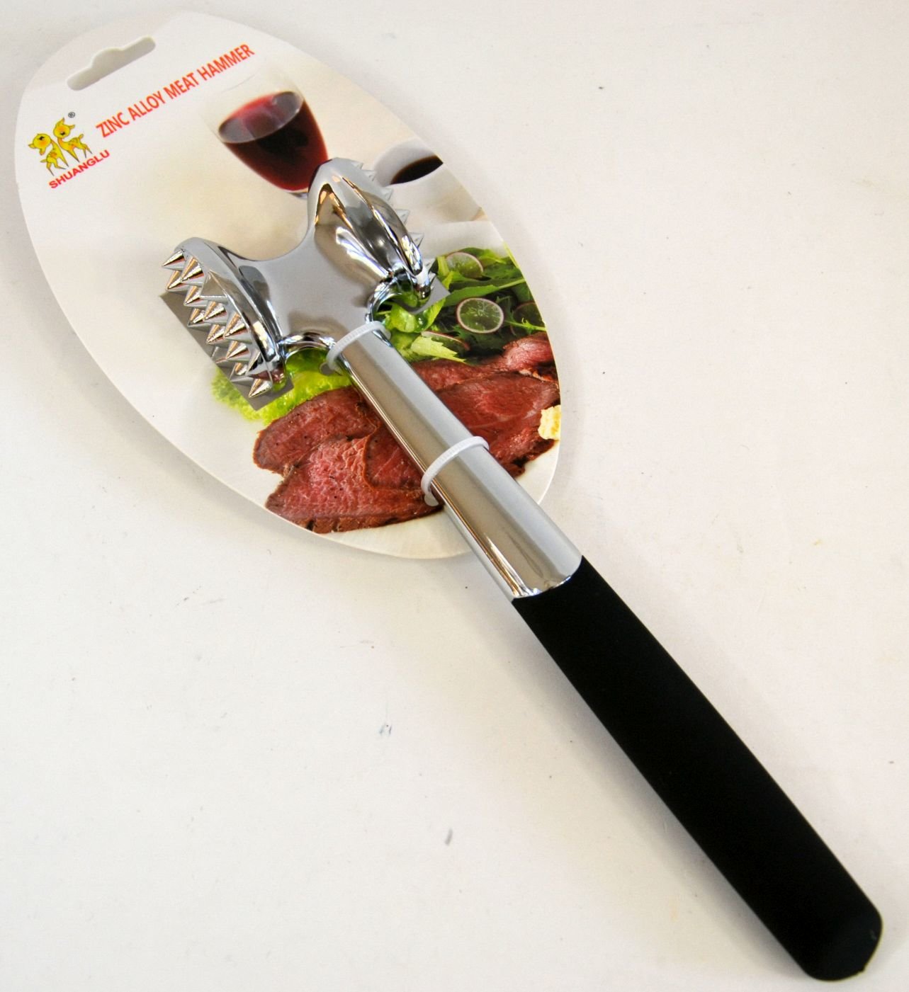 Oboustranná kovová palička na maso s pogumovanou rukojetí. Rozměry - délka 23cm, šířka paličky 5,5cm. przeczytaj całość